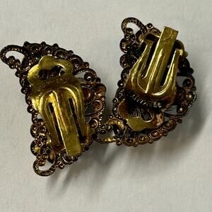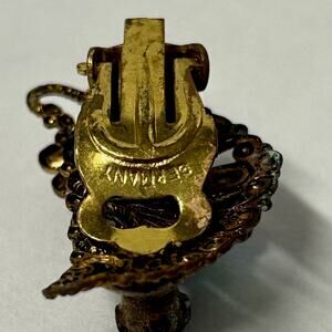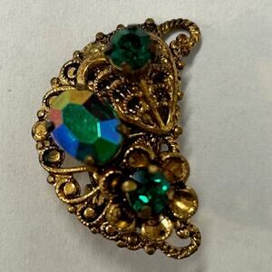 Vintage Crystal Rhinestone Clip On Half Moon Earrings Hearts Flowers Germany