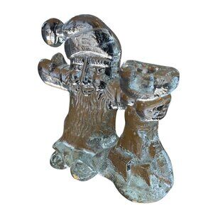 Add timeless charm to your holiday decor with this vintage crystal Santa Claus candle holder. Its exquisite craftsmanship and clear glass material create an enchanting glow when a candle is lit, enhancing your festive ambiance.