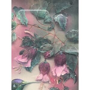 Vintage Crystal Skelley 3D Fushia Hummingbird Framed Art Signed Shadow Box.