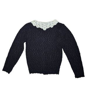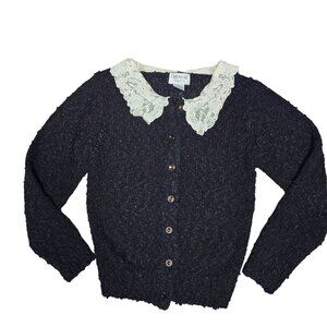 Vintage Crystal Sportswear Ltd Black Cardigan With Lace Collar Size S
