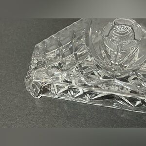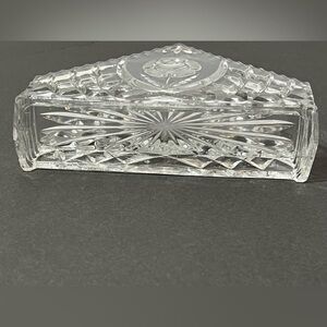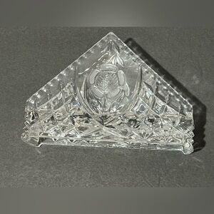 Vintage Crystal Triangle Napkin Holder Rose & Waffle Pattern Crimped Edge Design