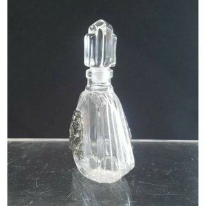 Vintage Crystal VCA Empty Bottle W/ Pewter Bird/Floral Design Made in France