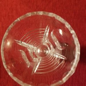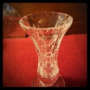 Crystal glass vase measures approximately 4" in height. Very pretty.