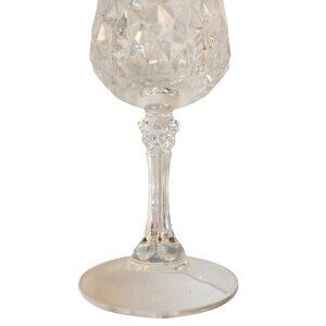 This set of 2 vintage Cristal d'Arques wine goblets is an elegant addition to any barware collection. Made in France, the 8" crystal glasses feature an iconic diamond cut design for a timeless, sophisticated look.