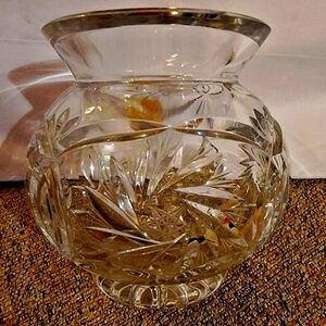 Vintage 3.75" x 3.75" Crystal Clear vase, handcrafted in Poland from stunning 24% lead crystal.
