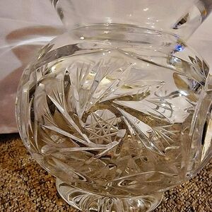 Tags: #VintageCrystal #PolishCrystal #LeadCrystal #FloralVase #StarburstPattern #HomeDecor #Collectible #LuxuryDecor #VintageFind #CrystalVase