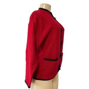 Add a touch of vintage style to your wardrobe with this beautiful red and black blazer from Crystal Kobe. Made from 100% wool, this original piece features black trim and button up design that is perfect for business occasions. The petite size makes it ideal for petites who want to add a secretary/geek look to their outfit.
