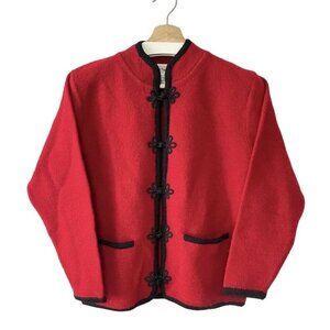 Vintage Crystal-Kobe Petite Small Red Heavy Wool Cardigan Sweater Knot Button Up