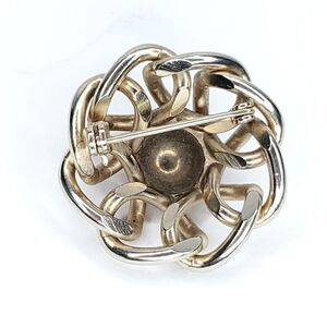 Vintage Cuban Chain Link Ball Wreath Circle Brooch Silvertone Goldtone Metal 1.2