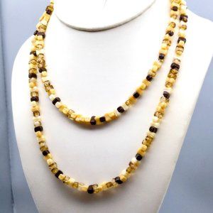 Vintage Cubed Glass Beaded Necklace in Neutral Beige Brown and Black Tones