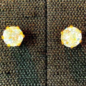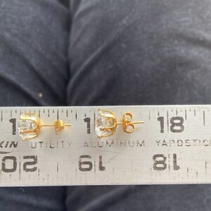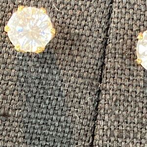 Vintage Cubic Zirconia 1/3” stone gold tone prong setting pierced post earrings