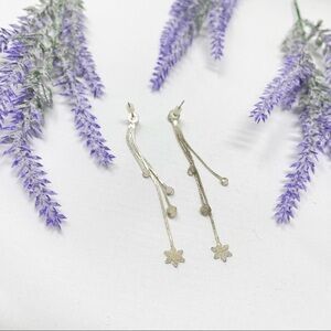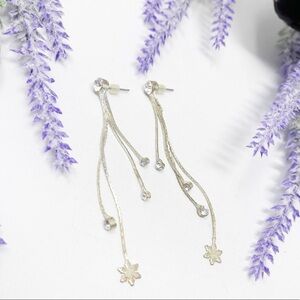 Vintage Cubic Zirconia Dainty Silver Tone Snowflake Fringe Drop Earrings