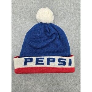 Vintage Cubs Pepsi Knitted Red Blue Winter Ski Cap Hat Advertising Pompom