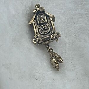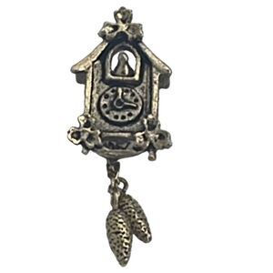 This is an adorable lapel or tie pin. Such a cute piece . Cuckoo Clock with dangles hanging down. Minimal wear.