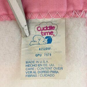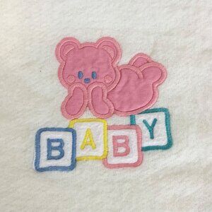 Vintage Cuddle Time Acrylic Baby Blanket With Pink Trim Bear Blocks Applique
