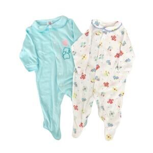 Vintage Cuddle Time Lot of 2 One Piece Long Sleeve Pajamas