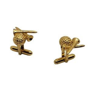 Vintage Cufflinks Gold Tone Golf Ball and Tee Cuff Links