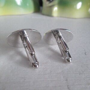 Vintage Cufflinks Oval Monogrammed D Diamond Cut Silver tone