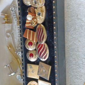 11 sets of cuff links, 8 tie clips, 6 tie tacks, various other pieces, see pics