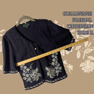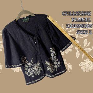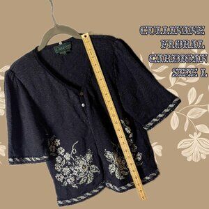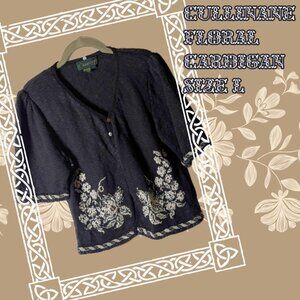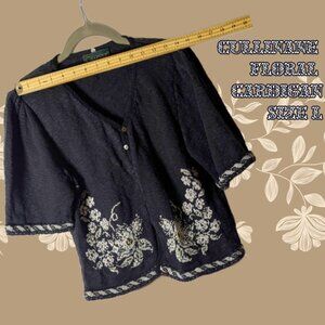 Vintage Cullinane Dark Blue & White Floral Embroidered Cardigan Sweater, Size L