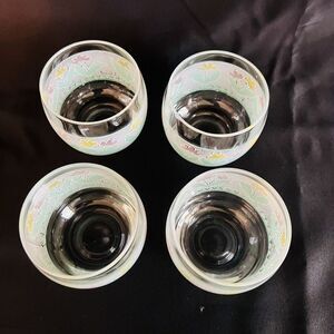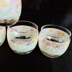 Vintage Culver Pastel Tulip Iris Roly Poly Rocks Glasses Set of 4 Floral Flower