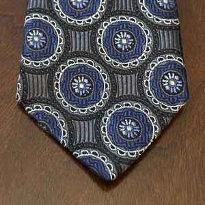 Add a touch of vintage charm to your wardrobe with this handcrafted Culwell & Son Dallas blue gray tie. Made with 100% silk and designed in the United States, this classic tie features a geometric pattern and a tied attachment type. Perfect for any occasion, whether you're dressing up for a formal event or adding some sophistication to your everyday look, this tie is sure to make a statement. With its blue color and travel theme, it's a great addition to any man's accessories collection.