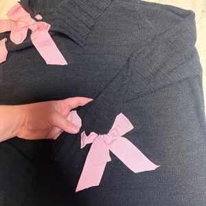 Elegant black sweater featuring charming pink ribbon accents. Perfect for adding a touch of style to your wardrobe.