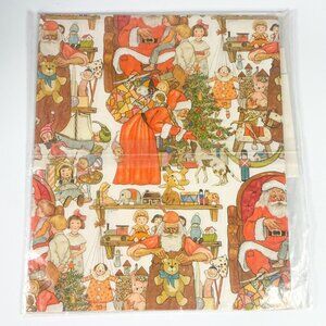 Vintage Current Inc Paper Christmas, Santa Clause, gifts Gift Wrap Set New 1980s Ephemera in original package with matching cards. 2 sheets and 2 cards.