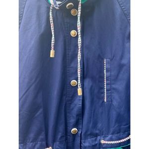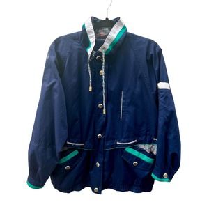 Vintage 1980-1990s Current Seen Jacket Mens Large Blue Reversible Windbreaker Pocket Snap Closure.