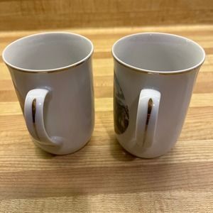 Vintage Currier & Ives Collectible 4 Seasons Mugs Gold Trim Summer and Autumn