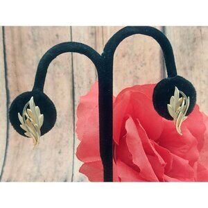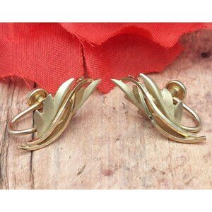 Vintage Curtis DCE 14K Gold Filled Screw Back Earrings 1" Leaf Gold Tone