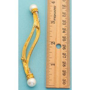 Vintage Curved Gold Tone Pearls Brooch by Avon, E27