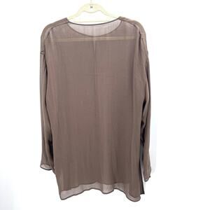 Vintage Custom Asian Style Sheer Taupe 100% Silk Jacket Lagenlook Womens XL