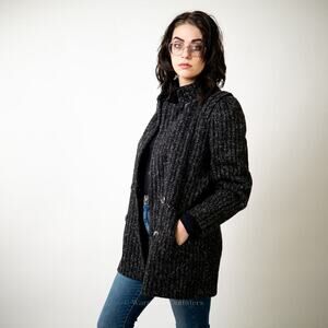 Vintage Custom Tailored Tweed Black Peacoat - M