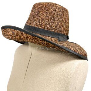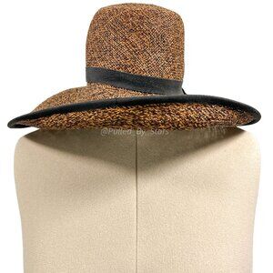 Vintage Custom-Made Artisan Magar Hatworks Millinery 17" Wide Brim Straw Sun Hat