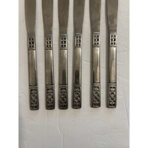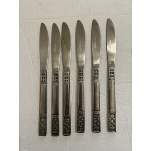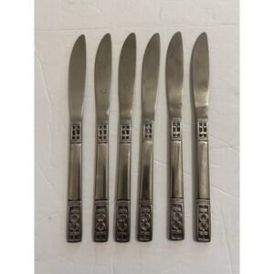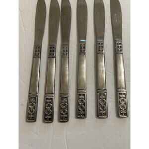 Vintage Customcraft Fluer De Lis Set Of 6 Dinner Knives Stainless Flatware CUS3