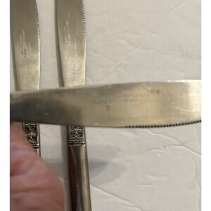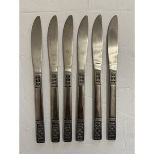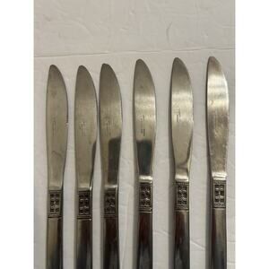 This listing is for a Set Of 6 Customcraft Dinner knives Stainless Flatware CUS3 7 1/8" as seen pictured they are in good used condition