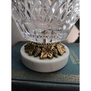 Vintage Cut Crystal Bowl on Marble Pedestal Base with Brass Grapevine Trim 5"