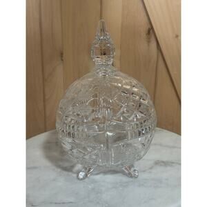 Beautiful Vintage Cut Crystal Covered Footed Candy Dish. Measures 10" hight and 6" wide each side. Excellent pre-owned vintage condition, no chips, cracks or scratches. A beautiful piece to add to your collection!