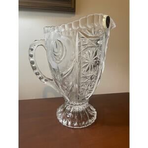 Vintage Cut Crystal Glass Etched Floral 9" Footed Pitcher with Original Sticker
