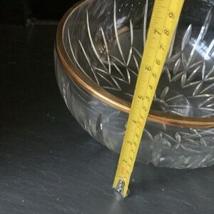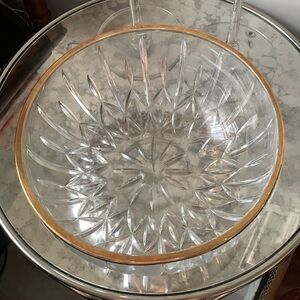 Vintage Cut Crystal Serving Bowl Gold Band Rim, Gorgeous Optic Cut Heavy bloock