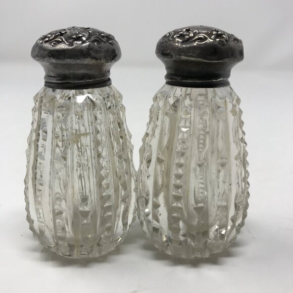 Vintage Cut Crystal Sterling Salt & Pepper Shakers