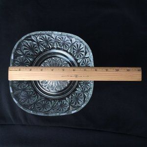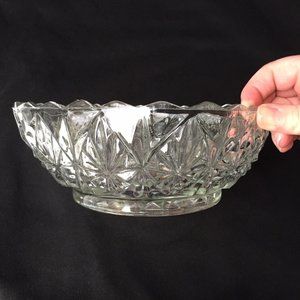 Vintage Cut Glass Bowl Clear Rounded Serving Dish Starburst Etch Textured Retro