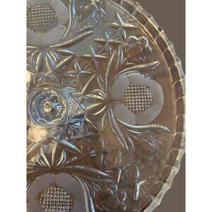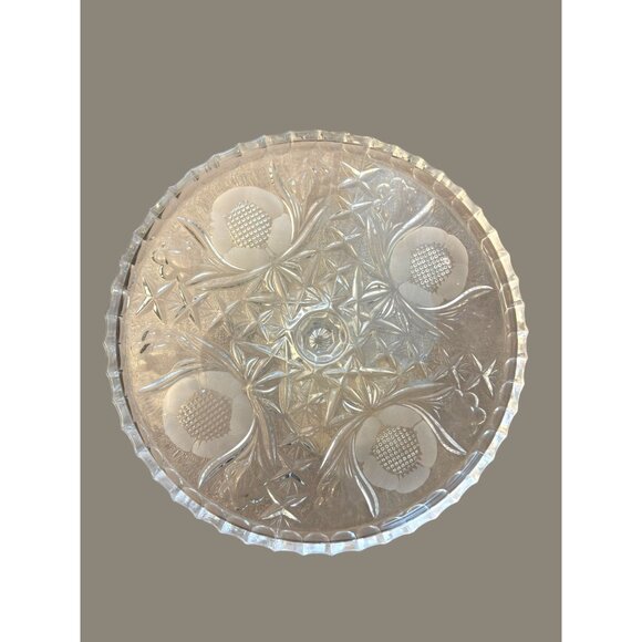 Vintage Cut Glass Cake Stand With Floral & Starburst Design