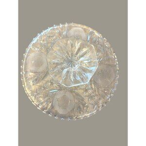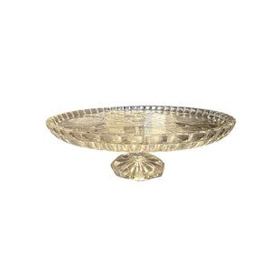 This vintage cut glass cake stand features an intricate floral and starburst design, exuding elegance and charm. The pedestal base adds sophistication, making it a timeless centerpiece. Perfect for showcasing cakes or desserts, it evokes a sense of nostalgia and grandeur at any gathering.