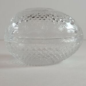 Vintage Cut Glass Egg Fostoria Avon Trinket Dish Candy Jelly Bean Bowl w/ Lid