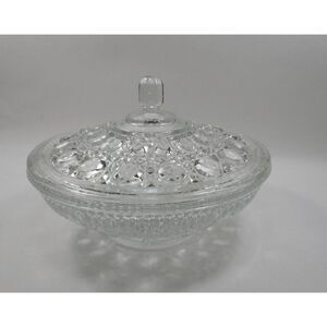 Vintage Cut Glass Low Profiled Jeweled Top Candy Jar with lid