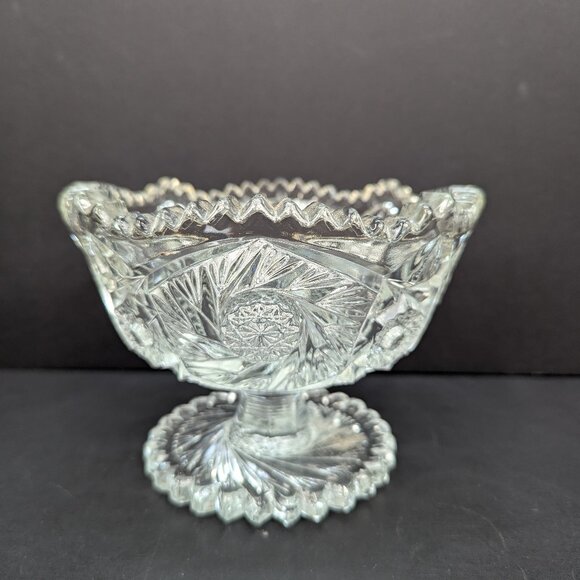 Vintage Cut Glass Pedestal Bowl or Compote Sawtooth Edge Pinwheel Design
