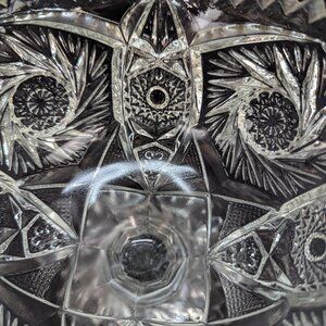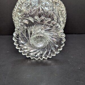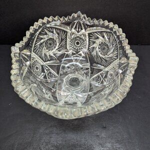 Vintage Cut Glass Pedastal Bowl or Compote Sawtooth Edge Pinwheel Design