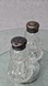 * Condition: Good vintage used condition. Metal tops show heavy tarnish/patina, oxidation/verdigris inside, and some small dings. Glass bodies are clear with no cracks observed; light surface wear present from prior use. Threads on glass rims intact. Please review all photos for close-ups of noted wear.